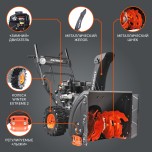 Многофункциональный снегоуборщик предназначен для регулярного использования в любых условиях для расчистки территории. Двухступенчатая система с двойным стальным шнеком подходит для уборки больших массивов, в том числе и огромных обледенелых сугробов, система расширителей XTS позволит увеличить эффективность уборки за счёт увеличения рабочей зоны. Функция подогрева ручек делает работу зимой максимально комфортной. Созданные для работы в зимних условиях колеса Winter Extreme обеспечат высокую проходимость и маневренность. Двигатель техники разработан специально для суровых российских зим и выдерживает температуры вплоть до -35 градусов, а для быстрого запуска в холодную погоду он оснащен функцией электростарта, позволяющей запустить его по нажатию одной кнопки. Управление вынесено на отдельную панель оператора, дающую быстрый доступ ко всем его элементам.