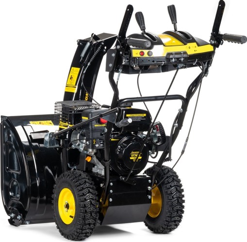 Запуск двигателя облегчен благодаря электростартеру, что особенно удобно зимой. Мощность снегоуборщика позволяет быстро справиться с плотным и обледенелым снегом. Для удобства оператора предусмотрено несколько передач вперед и назад, что делает управление машиной интуитивно понятным и комфортным.