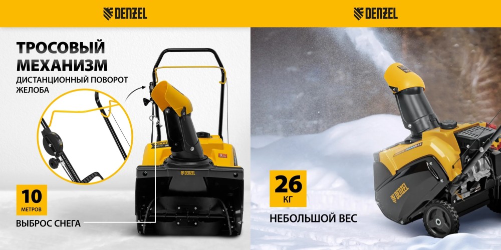 Бензиновая снегоуборочная машина Denzel SB 460 предназначена для уборки дачных участков, придомовой территории, парковок, дорожек и других территорий. Незначительно отличаясь от электрических моделей по габаритам и весу и сохраняя тем самым мобильность, она значительно превосходит их в производительности.