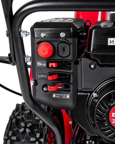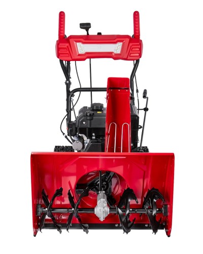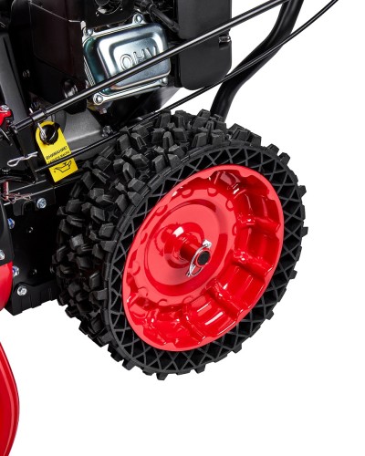 Бензиновый колёсный снегоочиститель мощностью 4 кВт с ковшом шириной 710 мм и высотой 520 мм, предназначен для уборки свежевыпавшего снега с ровных и твердых поверхностей.
