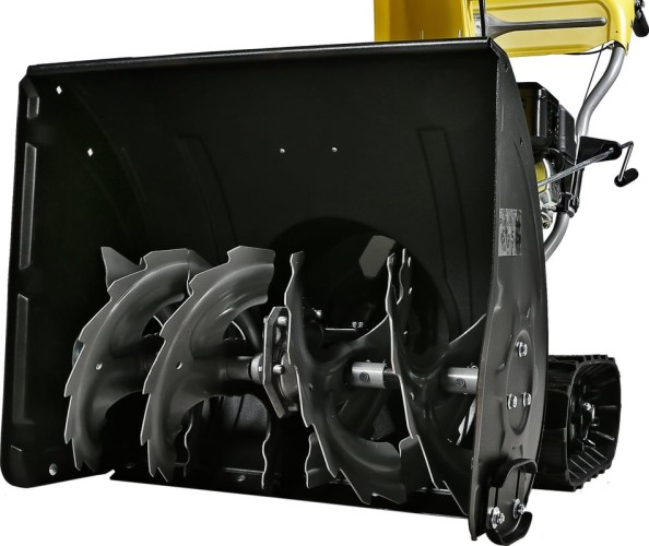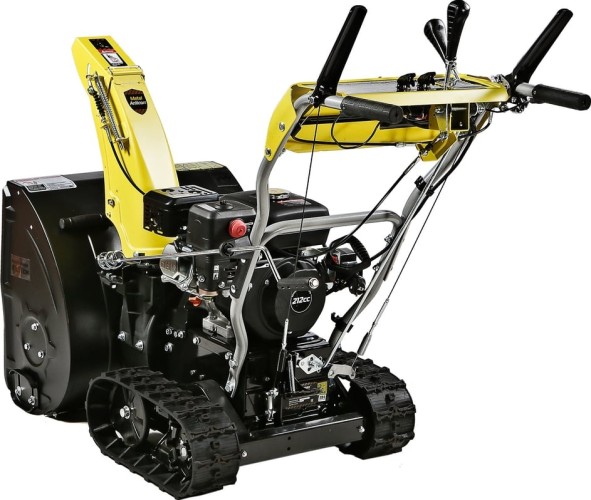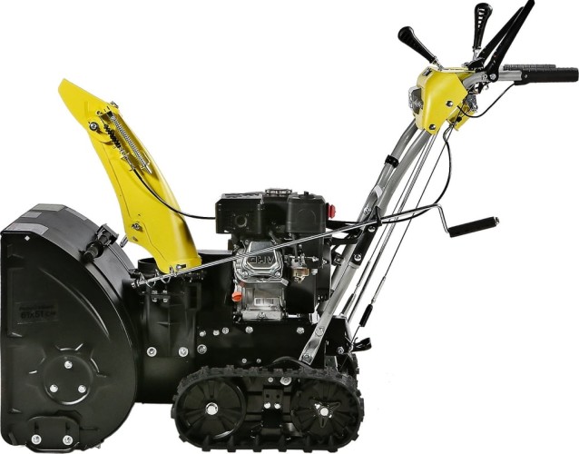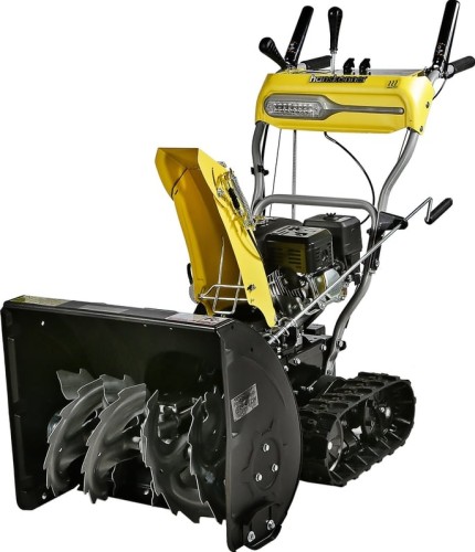 Модель оснащена надежным четырехтактным двигателем рабочим объемом 212 см3, мощностью 7л.с., предназначенным для интенсивной зимней эксплуатации, а также многоступенчатой трансмиссией, с шестью скоростями движения вперед и двумя назад. Низшие передачи применяются при уборке плотно слежавшегося и мокрого снега, средние передачи - для работы со свежевыпавшим снегом, высшая передача - транспортный режим, предназначенный преимущественно для перемещения снегоуборщика.
