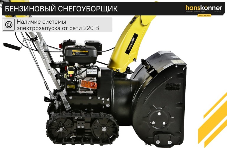 Важная особенность модели Hanskonner HSTG7661ELT - наличие системы электрозапуска от сети 220В: благодаря встроенному электростартеру запуск снегоуборщика максимально удобен и прост даже в условиях низких температур до минус 30 градусов.