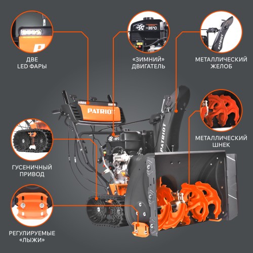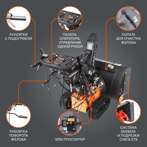 Высокопроизводительный гусеничный снегоуборщик PATRIOT Сибирь 110 ЕТ подходит для уборки снега и расчистки снежных заносов. Высокий зубчатый шнек с агрессивным дизайном перемалывает любой вид снега, включая сырой и обледеневший. Система XTS расширяет возможности для уборки на 10%, увеличивая площадь и высоту захвата. «Зимний» двигатель защищен от сильных морозов до -35 градусов, а функция электростарта позволяет запустить его по нажатию одной кнопки. Для работы в темное время модель оснащена LED-фарой. Управление вынесено на отдельную панель, дающую быстрый доступ ко всем его элементам.