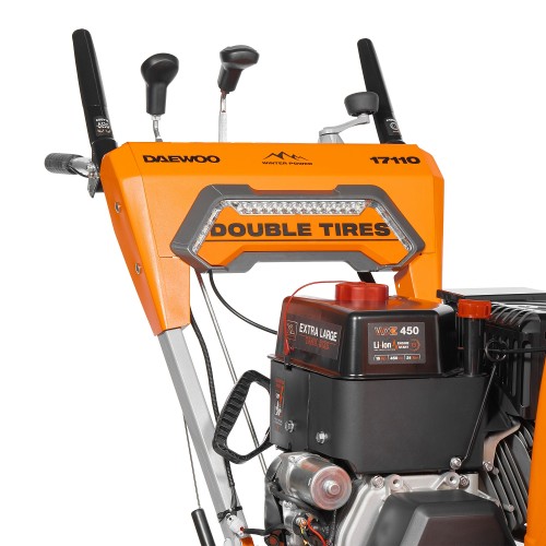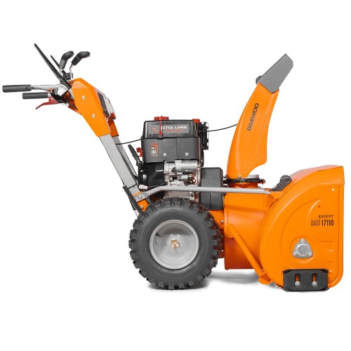 Бензиновый снегоуборщик DAEWOO DAST 17110 отличается большой шириной захвата, высокой проходимостью, маневренностью, наличием фары и подогрева ручек, безотказностью в работе. Его мотор заводится при любой погоде. Снегоуборщик имеет электростартер, работающий от сети 220 Вольт. Оснащен агрессивными шнеками-ледорубами, что позволяет убирать залежалый и обледенелый снег. Дальность выброса регулируется в диапазоне 1-16 метров.