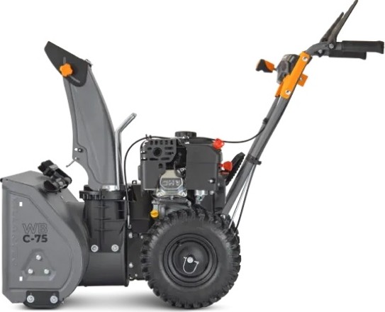Снегоуборщик бензиновый VILLARTEC WBC-75 входит в серию компактных моделей C-Series - надежный помощник для быстрой уборки снега на небольших территориях: придомовых дорожках, патио, парковках перед гаражом. Этот компактный снегоуборщик оснащен зимним бензиновым двигателем VILLARTEC объемом 212 куб. см и мощностью 7 л.с., который уверенно запускается в мороз и обеспечивает достаточную производительность для своих задач. Усиленная конструкция шнека (толщина металла увеличена) и редуктора гарантирует долгий срок службы даже при работе с утоптанным снегом. Захват ковша шириной 56 см и высотой 40 см специально разработан для маневренности в ограниченном пространстве. Система выброса снега эффективно отбрасывает его на расстояние до 12 метров, освобождая путь. Управление направлением выброса интуитивно понятное: вращение желоба осуществляется непосредственно на желобе, а угол выброса регулируется дефлектором. Это позволяет быстро адаптироваться к изменяющемуся ветру. Трансмиссия Disc-o-Matic с 4 передними (4F) и 1 задней (1R) скоростями дает вам гибкость в выборе оптимальной скорости движения вперед для разного типа снега (свежий, мокрый, слежавшийся) и возможность маневрировать задним ходом. Большие колеса размером 13"" на 4,10-6 обеспечивают хорошую проходимость и стабильность даже на неровном покрытии. C-75 – это проверенная комбинация компактности, надежности и достаточной мощности для ежедневной уборки снега на небольшой территории.