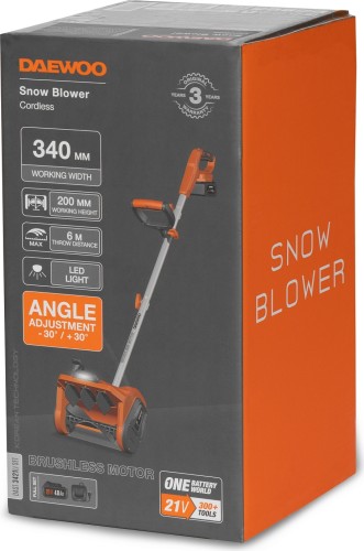 Снегоуборщик (электролопата) аккумуляторный DAEWOO DAST 3421Li SET с АКБ и ЗУ модель совместима со всеми аккумуляторными инструментами и батареями DAEWOO линейки 21В.