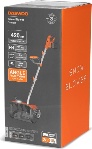 Снегоуборщик (электролопата) аккумуляторный DAEWOO DAST 4242Li SET с АКБ и ЗУ модель совместима со всеми аккумуляторными инструментами и батареями DAEWOO линейки 21В.