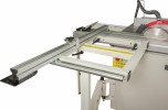 Станок оборудован подвижным столом (кареткой), ход которого составляет 1600 мм. При работе на нем деталь фиксируют при помощи углового упора, эксцентрикового прижима или продольного упора. В стандартный комплект входит и расширение подвижного стола с телескопической опорой и раздвижным поворотным упором заготовки. В разложенном состоянии его длина составляет 2200 мм, в сложенном 1200 мм.