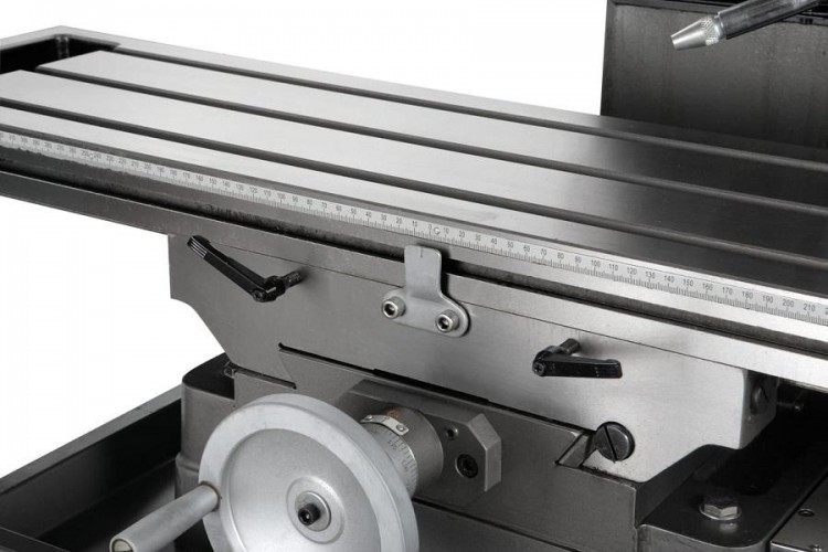 Модель JMD-45LPF оснащена рабочим столом размером 1000 x 240мм, который перемещается по направляющим типа ласточкин хвост и имеет возможность перемещения по осям X, Y на величину 760мм и 190 мм соответственно. На столе имеется три Т-образных паза шириной 14 мм для закрепления деталей прихватами или установки тисков и других приспособлений.