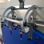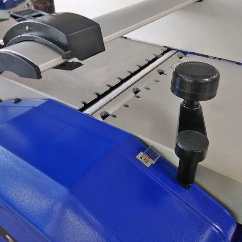 Нижний рабочий стол – для рейсмусования, выполнен из стали. Нужная высота рейсмусования настраивается с помощью рукоятки. Вал оснащен двумя ножами.