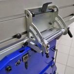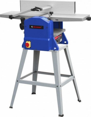 Модель имеет настольное исполнение. Корпус сборный, выполнен из стали. Верхние столы предназначены для строгания/фугования заготовок. Нижний рабочий стол –для рейсмусования. Строгальные и рейсмусовые столы, параллельный упор выполнены из алюминия. Угол наклона упора регулируется. Нужная высота настраивается с помощью рукоятки. Вал оснащен двумя ножами. Удаление отходов резания осуществляется через съемный кожух. Имеется токовая защита.