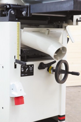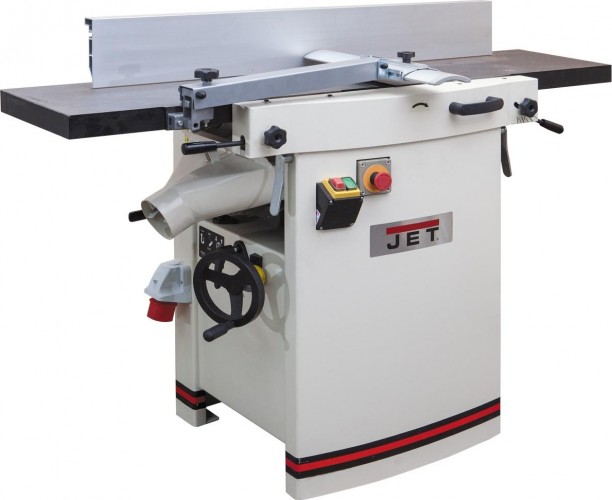 Комбинированный станок Jet JPT-310HH оптимален для использования в мастерских с ограниченным пространством в качестве замены отдельных рейсмуса и фуганка. Модель востребована как любителями работы с деревом, так и профессионалами. Кроме существенной экономии рабочего пространства комбинированный станок обеспечивают и экономию средств при покупке. По основным характеристикам и удобству работы JPT-310HH не уступает отдельным рейсмусу и фуганку. Длинные и массивные чугунные столы создают базу, достаточную для работы с деталями длиной до 2-3 метров. Относительно специализированного станка несколько облегчен фуговальный упор: он не из чугуна, а из алюминиевого профиля. С другой стороны, эта модель обладает редким достоинством: удобную эксцентриковую регулировку по высоте имеет не только подающий, но и принимающий стол. Это необходимо, прежде всего, при замене строгального вала на helical, режущие пластины которого не регулируются по высоте. Для перехода от фугования к рейсмусованию достаточно поднять верхний модуль, состоящий из столов и рамы, и переустановить кожух стружкоотсоса, сделанные ранее настройки при этом не сбиваются. Такая конструкция дает преимущества как в работе, так и при обслуживании станка. Вал helical, установленный на JPT-310HH «в базе», широко востребован в среде профессионалов. Его основные достоинства – низкий уровень шума при работе, чистое срезание сучков, отсутствие вырывов древесины, продолжительный ресурс твердосплавных четырехгранных лезвий, отсутствие необходимости заточки и регулировки.