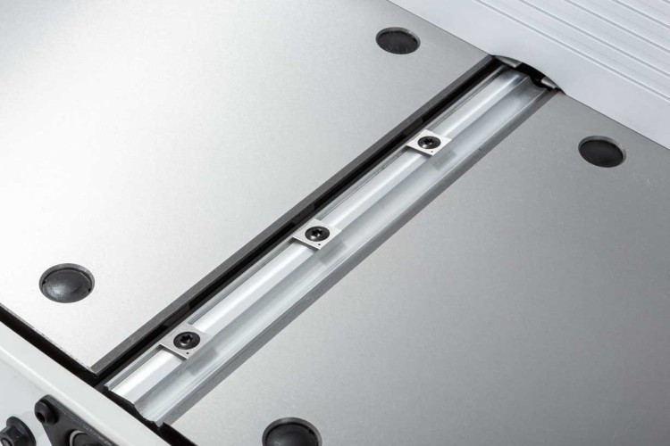 Выдвижные удлинители увеличивают опорную поверхность почти до 1400 мм и имеют юстировку по плоскости относительно подающего и принимающего столов.