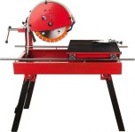 Станок предназначен для резки кирпича, облицовочной плитки, гранита, брусчатки, мрамора и других строительных и отделочных материалов. Максимальная длина реза составляет 800 мм. Эта модель отличается надежностью, устойчивой конструкцией, небольшим весом. Благодаря складывающимся ножкам удобна при транспортировке. Глубина резки при необходимости регулируется с помощью поднятия-опускания режущей головки. Резка осуществляется за счет перемещения каретки по направляющим. Возможно использование алмазных дисков диаметром от 350 до 400 мм с посадочным отверстием 25,4 мм. Так же есть возможность поворота режущей головки под углом 45 градусов для снятия фаски. Электрический двигатель снабжен защитой от перегрева. Станок укомплектован помпой для рециркуляции воды. Диск в комплектацию не входит, приобретается отдельно.