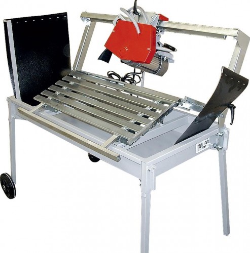 * Электрический станок с увеличенной длиной реза (1500 мм) с верхним расположением направляющей для резки плитки и камня. Позволяет производить резку под углом 45 град.