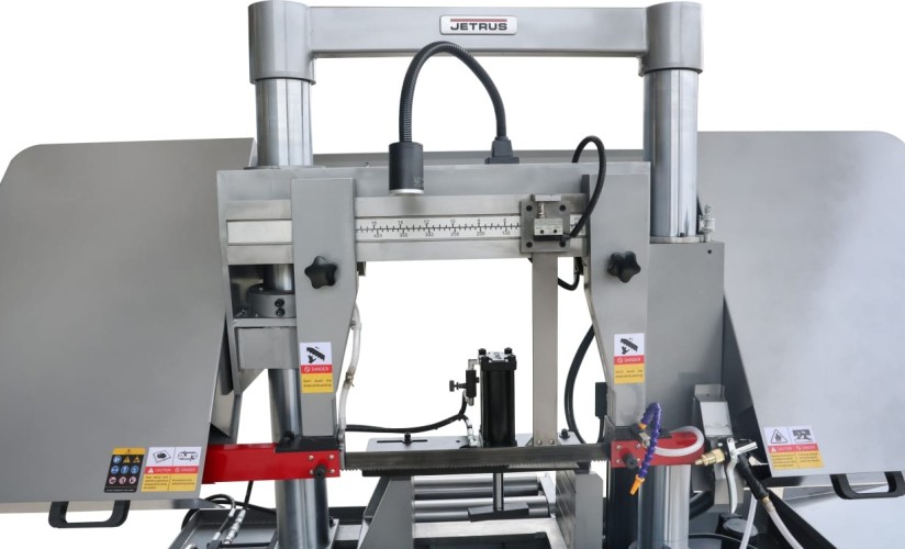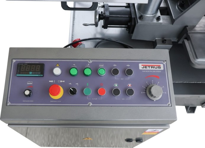 Станок оснащен гидравлической системой подъема и опускания пильной рамы с плавной регулировкой скорости подачи с пульта оператора для выбора оптимального режима резания. По окончании пиления, концевой выключатель останавливает движение ленточного полотна, пильная рама поднимается в исходное положение для осуществления циклических операций.