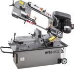 Модель HBS-912L имеет регулируемые направляющие, предназначенные для прохода ленточного полотна в зависимости от формы заготовки и ее диаметра. Наличие направляющих предотвращает возникновение вибрации полотна, уход полотна в сторону. Направляющие укомплектованы блоком подшипников и твердосплавными сухарями, осуществляющими позиционирование полотна непосредственно под прямым углом к поверхности обрабатываемой заготовки. Качество пиления обеспечивается подачей СОЖ в зону резания. Сила натяжения полотна обеспечивается поворотом маховика, установленного в левой, торцевой части консоли. Ленточнопильный станок оборудован поддоном для сбора стружки и отработанной жидкости. Вес станка в полном снаряжении составляет 190 кг.