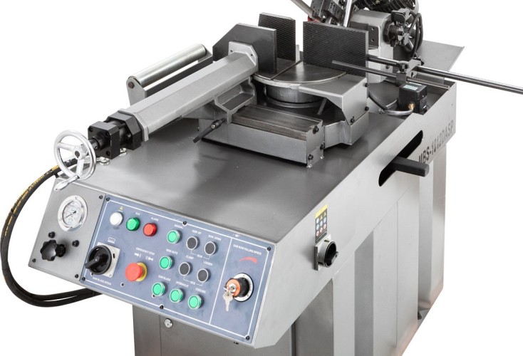 Модель MBS-1012DASP имеет регулируемую направляющую для регулировки прохода ленточного полотна в зависимости от формы заготовки и ее диаметра. Направляющие блоки осуществляют позиционирование полотна непосредственно под прямым углом к поверхности обрабатываемой заготовки. Максимальная стойкость ленточного полотна обеспечивается подачей СОЖ в зону резания.