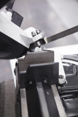 Движение ленты осуществляется через мотор-редуктор с плавной регулировкой скорости резания, в диапазоне 66-85 м/мин, для различных материалов.