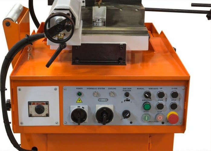 Модель Stalex BS-315GH является гидравлическим ленточнопильным станком, данная модель популярна среди станков Stalex серии консольных полуавтоматов. На полуавтоматических станках возможна работа как в ручном режиме, когда каждая операция выполняется вручную посредством нажатия соответствующей кнопки, так и в автоматическом режиме, когда станок выполняет весь цикл резания (зажим заготовки – запуск пилы – опускание рамы – остановка пилы – подъем рамы – отжим тисков). В последнем случае оператор должен лишь обеспечить подачу заготовок и нажатие кнопки «Пуск». Гидравлические тиски раздвигаются на 330 мм., что позволяет пилить прямоугольною заготовку с размерами превышающими рабочий просвет подъема пильной рамы. На станках применяются биметаллические пилы марок М42 и М51 размером 27х0,9х2825 мм. Пилы с более твёрдым зубом М51 предназначены для резки заготовок из нержавеющих сталей. Отрезание заготовок на ленточно-отрезных станках необходимо проводить с использованием смазочно-охлаждающих жидкостей (СОЖ), обеспечивающих качественный рез, ресурс пилы и сохранность станка.