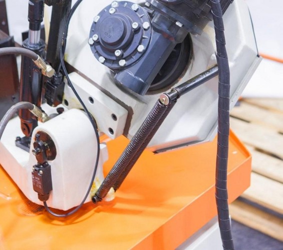 Используя данную модель, имеющую гидравлические регулируемые тиски для резки под углом, поворачивается рама, а не заготовка. Гидравлические тиски автоматизируют процесс фиксации и снятия заготовки (ускоренный отвод подвижной губки происходит без вращения маховика). Наличие система СОЖ в стандартной комплектации – позволяет добиться высокой производительности.