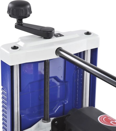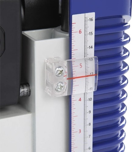 На ножевом валу установлены два ножа с двухсторонней заточкой. В случае затупления одной стороны, нож можно перевернуть и продолжать работу. Глубина резания настраивается рукояткой регулировки. Результат настройки показывает указатель шкалы. Один оборот ручки регулировки равен глубине реза 1,6 мм.