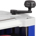 Модель оборудована индикатором строгания, отображающим высоту снятия за один проход, и рукояткой регулировки, перемещающей рабочую платформу. Установка конечной толщины обработки производится рукояткой настройки суммарной глубины строгания, расположенной на правом торце корпуса.