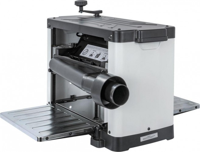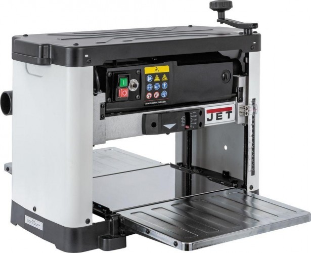 Станок JWP-12L – переносной рейсмусовый станок по дереву популярного компактного класса, широко востребованный благодаря сочетанию мобильности, производительности, надежности и сравнительно невысокой цены оборудования. Конструкция и размер инструмента удачно совмещает традиционные хорошо зарекомендовавшие себя решения с новыми. Например, подающий и принимающий валы теперь имеют покрытие из светлой резины – в случае пробуксовки они не будут оставлять черных следов. Механизм регулировки высоты строгальной части помимо традиционной регулировочной шкалы имеет индикатор отображения глубины съема. Подставив заготовку под его щуп можно узнать, какую толщину будут срезать ножи, и скорректировать этот параметр, если потребуется (максимальное рекомендованное значение 1,6 мм по всей ширине и 2,4 мм, если деталь менее 150 мм в поперечнике).