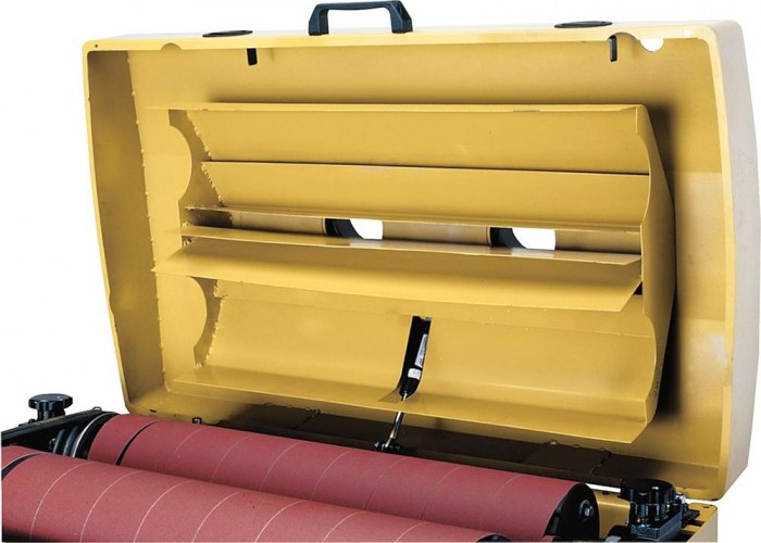 Powermatic DDS-225 – мощный профессиональный шлифовальный станок, предназначенный для эксплуатации на производстве. Может работать с брашировальными (щеточными) валами, которые поставляются в качестве дополнительных принадлежностей или барабанами с намоткой из абразивной ленты (стандартная комплектация). При условии небольшого съёма материала станок подходит для калибрования изделий из дерева, клееных пустотелых фасадов, деталей из МДФ и прочих подобных, причем сразу под финишную отделку. В сочетании с щетками DDS-225 может производить текстурирование (браширование) поверхности или шлифование фасонных изделий.