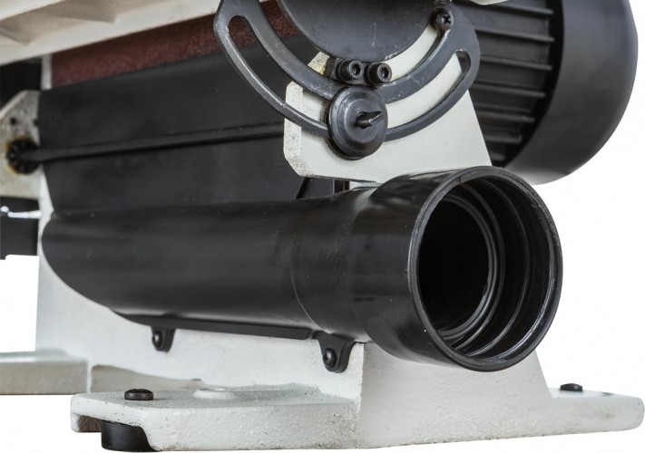 На лицевой стороне сбоку патрубок 57 мм для подключения к системе аспирации, для перехода на 100-миллиметровый шланг используют адаптер JW-1000 (опция). Сбор пыли производится через пластиковый кожух, полностью охватывающий нижнюю часть диска.