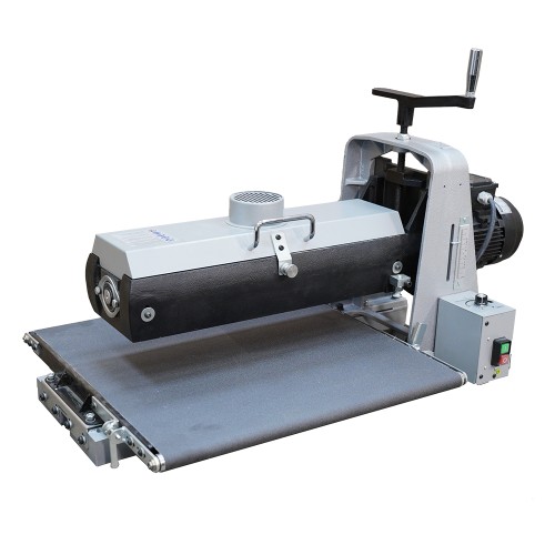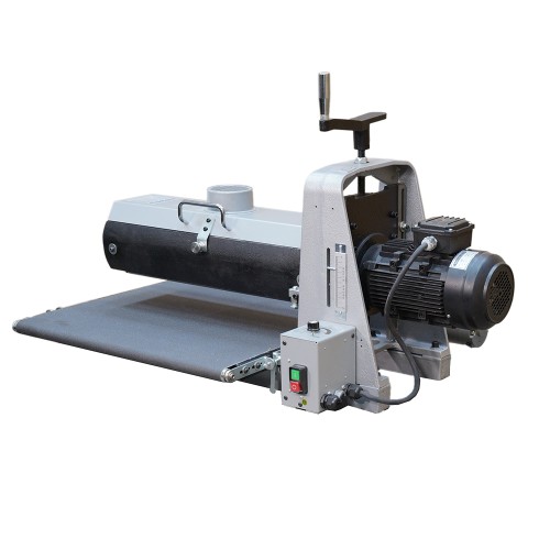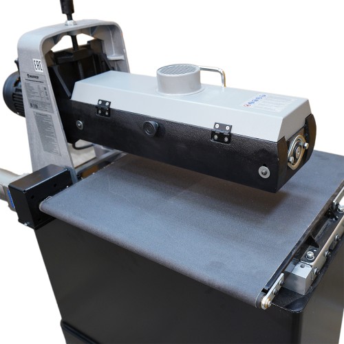 Конвейерный стол шире барабана, обеспечивая дополнительную опору при шлифовании заготовок большого размера