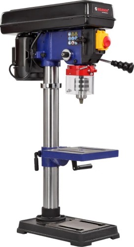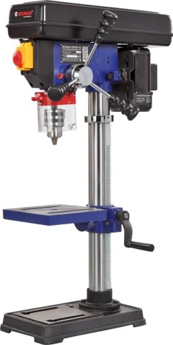 Модель DP250-16J простая, но обладает целым рядом достоинств. Стол, опора и корпус сверлильной головки выполнены из чугуна, что придает оборудованию серьезный вес 29 килограмм. Двигатель асинхронный, мощностью 450 Вт. Станок высокий – 855 мм, подходит для обработки заготовок большой толщины. Максимальное расстояние между шпинделем и столом – 430 мм.