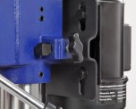 Заготовку можно крепить как к рабочему столу, так и к основанию, все зависит от ее размера. В комплекте предусмотрены тиски. Для их крепления есть по два паза на рабочем столе и на основании. Шкала, расположенная на рукоятке регулировки глубины сверления, показывает ход пиноли шпинделя, с ее помощью можно настраивать ход пиноли, для этого необходимо провернуть шкалу, стрелка на корпусе будет показывать значение, на которое будет возможно погружение сверла, затем затянуть барашек. Наконечники тройной рукояти удобной формы, что способствует плавной подаче сверла к заготовке.