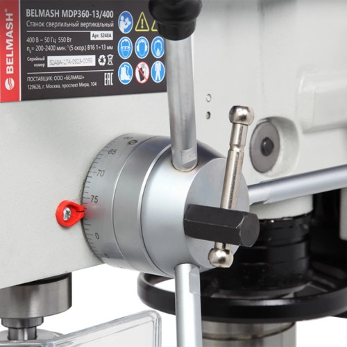 Станок BELMASH MDP360-13/400 предназначен для обработки различных материалов (мягкие и твердые металлы, древесина) вращающимся режущим или шлифующим инструментом, с целью получения сквозных и глухих отверстий, для чистовой обработки, расточки отверстий, образованных в заготовке каким-либо другим способом.