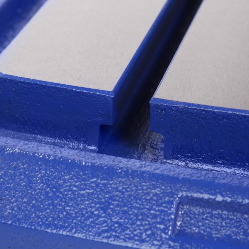 Рабочий стол имеет размер 277×246 мм, возможность наклона от - 45 до +45 градусов, регулировку по высоте и два паза под установку тисков (входят в комплект поставки) или других зажимов. Стол способен выдерживать нагрузку до 30 кг. Основание станка - это не только надежная опора, но и рабочая поверхность 345×520 мм, а Т-образные пазы позволят надежно закрепить заготовку.