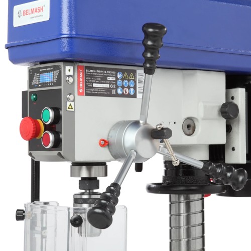Станок BELMASH MDP410-16P/400 предназначен для обработки различных материалов (мягкие и твердые металлы, древесина) вращающимся режущим или шлифующим инструментом, с целью получения сквозных и глухих отверстий, для чистовой обработки, расточки отверстий, образованных в заготовке каким-либо другим способом.