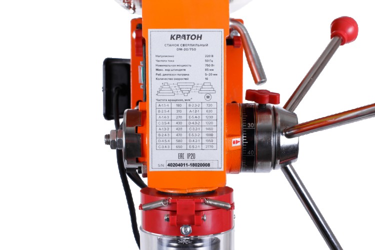 Станок сверлильный Кратон DM-20/750 оборудован производительным двигателем асинхронного типа, который предоставляет устройству возможность работать быстро и качественно. Инструмент может проделывать разные отверстия в дереве и других материалов. Станок предусматривает 16 скоростных режимов, которые легко устанавливаются под определенный вид работ. Конструкция агрегата позволяет использовать различные оснастки, поскольку является универсальной. Подходит для долговременной эксплуатации, можно использовать в мастерских.