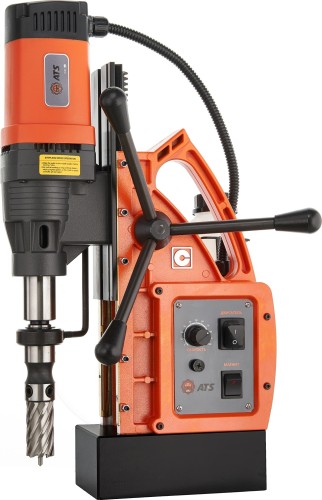 Магнитный сверлильный станок SU-98 относится к группе станков с особо мощным двигателем. SU-98 самый большой и многофункциональный в линейке станков AT-S. Привод имеет шпиндель с Конусом Морзе 3 и комплектуется держателем Weldon19/МК3, что позволяет работать с таким инструментом как сверла корончатые, спиральные сверла с коническим хвостовиком до 32 мм, зенковки, метчики для сквозных отверстий и проч. Дополнительно можно укомплектовать трехкулачковым патроном для сверления отверстий спиральными сверлами диаметром до 13 мм. На станке можно работать широким спектром корончатых сверл - диаметры от 12 мм до 98 мм, длины от 25 мм до 110 мм.