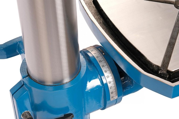 Чугунное основание станка и вертикальная стойка препятствуют вибрации при его работе