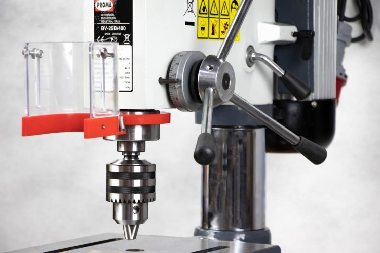 Основные сферы применения сверлильного станка BV-25B/400 — это получение и последующая обработка отверстий в металлических, деревянных, пластмассовых деталях, а также заготовок из других материалов. Данный тип станков широко применяется как в мелкосерийном, так и в крупном производстве, в цехах и мастерских, где требуется образование отверстий в деталях небольших размеров. Есть возможность наклона стола на 45°, что делает работу более удобной. Наибольший диаметр сверления — 25 мм.