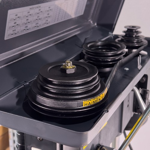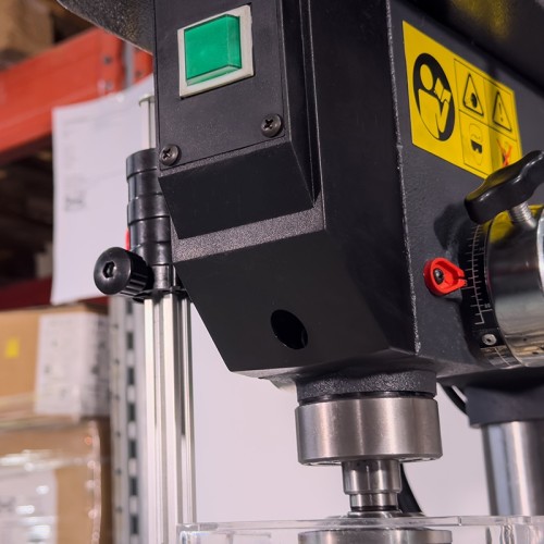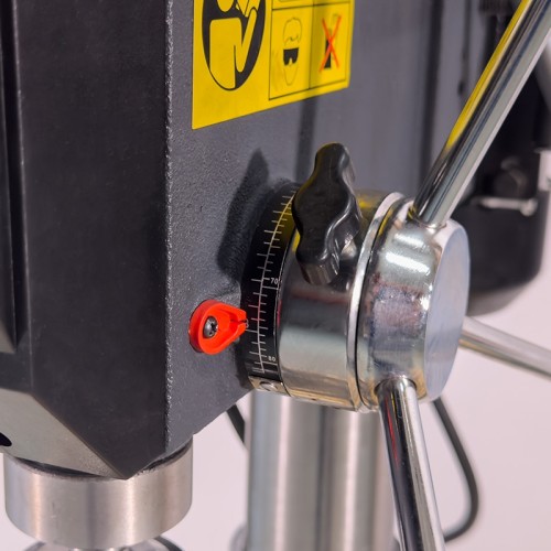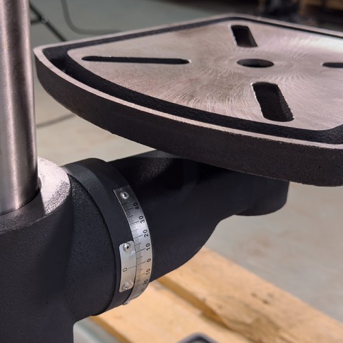 Особенностью представленного оборудования является дополнительная возможность выбора направления вращения шпинделя. Кроме этого, станок снабжен радиальными подшипниками. Существует возможность обработки деталей под различными углами за счет поворота стола с помощью поворотной цапфы (угол поворота — 360 град.), а также наклона стола на 45 градусов. Глубина сверления может регулироваться в зависимости от поставленных задач. Рабочая зона станка — с подсветкой.