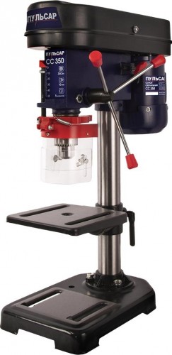 Электрический сверлильный станок ПУЛЬСАР СС350 предназначен для сверления, отверстий в металлах, твердых полимерных материалах и древесине, при установке соответствующих свёрл. Сверлильный патрон и часть сверла закрыты прозрачным экраном для предотвращения попадания стружки в оператора. Жесткая конструкция рабочего стола и основания обеспечивают четкость и точность отверстий.