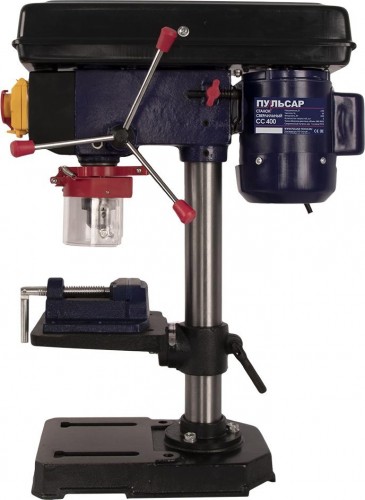 Электрический сверлильный станок ПУЛЬСАР СС400 предназначен для сверления, отверстий в металлах, твердых полимерных материалах и древесине, при установке соответствующих свёрл. Сверлильный патрон и часть сверла закрыты прозрачным экраном для предотвращения попадания стружки в оператора. Жесткая конструкция рабочего стола и основания обеспечивают четкость и точность отверстий.
