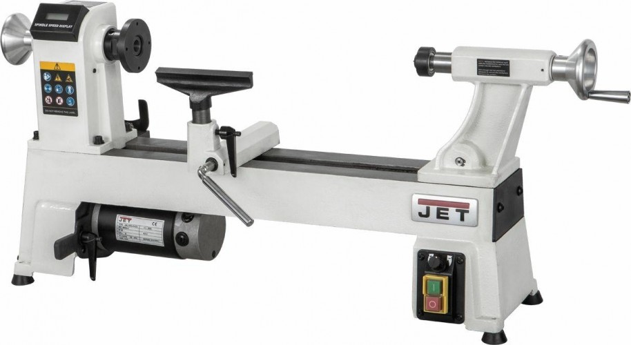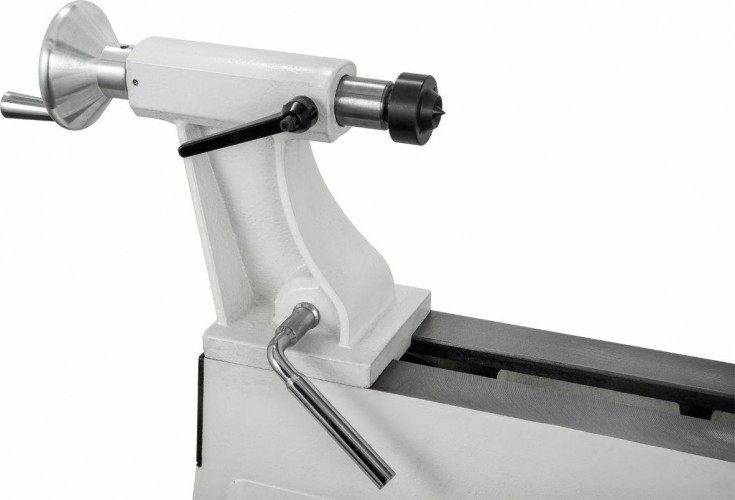 Важное достоинство JWL-1220LVS – богатая начальная комплектация (два подручника, планшайба, центры и пр.) и удачная конструкция, детали которой хорошо проработаны и соответствуют реалиям отечественного рынка (метрическая резьба шпинделя, конусы МК-2 в передней и задней бабках, эксцентриковые зажимы, удобные алюминиевые маховики и пр.).