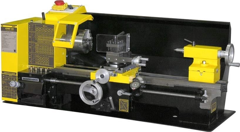 Токарный станок по металлу «Корвет 402» предназначен для обработки заготовок из металла, древесины, всех видов пластмассы методом точения. На токарном станке «Корвет» можно выполнять следующие виды токарных работ: цилиндрическое, фасонное и коническое точение, торцевание, нарезание метрической и дюймовой резьбы, сверление, растачивание, снимать фаски, выбирать галтели. Для обработки заготовок большого диаметра возможна установка обратных кулачков в самоцентрирующийся патрон. Для обработки заготовок большой длины возможна установка подвижного и неподвижного люнета. При установке планшайбы можно выполнять токарную операцию со смещением от центра вращения. Широкий диапазон регулировки частоты вращения и скорости продольной подачи увеличивает арсенал применяемого режущего инструмента.