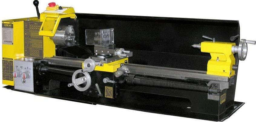 Токарный станок по металлу «Корвет 403» предназначен для обработки заготовок из металла, древесины, всех видов пластмассы методом точения. На токарном станке «Корвет» можно выполнять следующие виды токарных работ: цилиндрическое, фасонное и коническое точение, торцевание, нарезание метрической и дюймовой резьбы, сверление, растачивание, снимать фаски, выбирать галтели. Для обработки заготовок большого диаметра возможна установка обратных кулачков в самоцентрирующийся патрон. Для обработки заготовок большой длины возможна установка подвижного и неподвижного люнета. При установке планшайбы можно выполнять токарную операцию со смещением от центра вращения. Широкий диапазон регулировки частоты вращения и скорости продольной подачи увеличивает арсенал применяемого режущего инструмента.