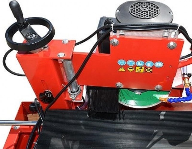 Так же есть возможность регулировать глубину торцевого пропила. Толщина пропила зависит от толщины применяемого диска. Станок снабжен системой подачи воды в зону резания.