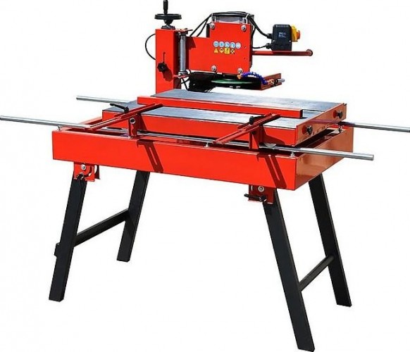 Станок позволяет делать пазы в торце плитки на длину до 800 мм. Станок снабжен регулировкой высоты поднятия диска, что позволяет делать пропилы в плитке разной толщины.