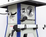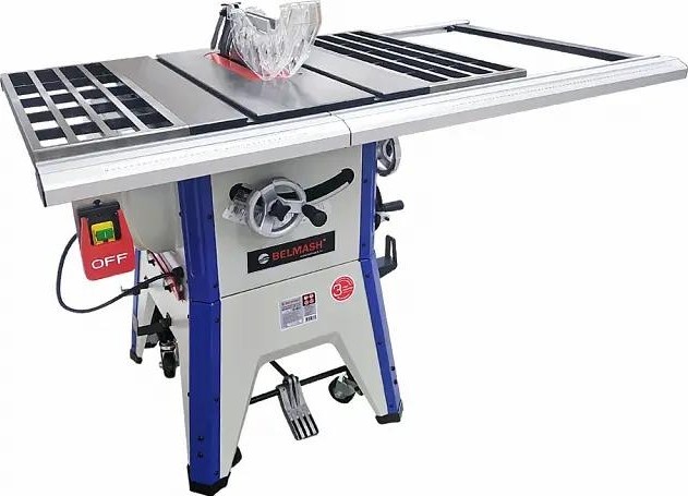 Круглопильный станок BELMASH LTS-250 предназначен для обработки древесины (цельного дерева, фанеры, ДВП, МДФ, ДСП, ОСП и т.п.) пилением с целью придания им необходимых форм и размеров, с ручной подачей заготовки. Исполнение напольное. При соответствующей наладке на станке можно выполнять распиловку вдоль и поперек волокон, распиловку вдоль и поперек волокон с наклоном режущего инструмента, распиловку вдоль волокон с помощью параллельного упора, распиловку поперек волокон под углом с помощью углового упора, отбор четверти. Возможна установка наборных дисков DADO, с посадочным диаметром 16 мм и шириной до 19 мм, для этого в комплектации станка имеется специальный вкладыш. Для установки стандартных дисков с посадкой 30 мм в комплектации имеется переходное кольцо 16/30 мм. Станок оснащен основным рабочим столом и двумя дополнительными секциями из чугуна. Стол имеет два стандартных паза для установки углового упора или дополнительных приспособлений. На передней направляющей параллельного упора есть шкала для точной установки. На расклинивающем ноже установлена защита от обратной отдачи. Корпус изделия сварной, закрытый, изготовлен из листовой стали, имеет отверстие для установки патрубка для отвода стружки (Ø 100 мм), снабжен специальными держателями для хранения толкателя, углового упора, параллельного упора, ключа и пильных дисков.