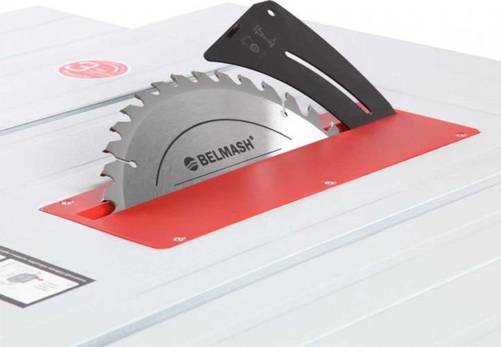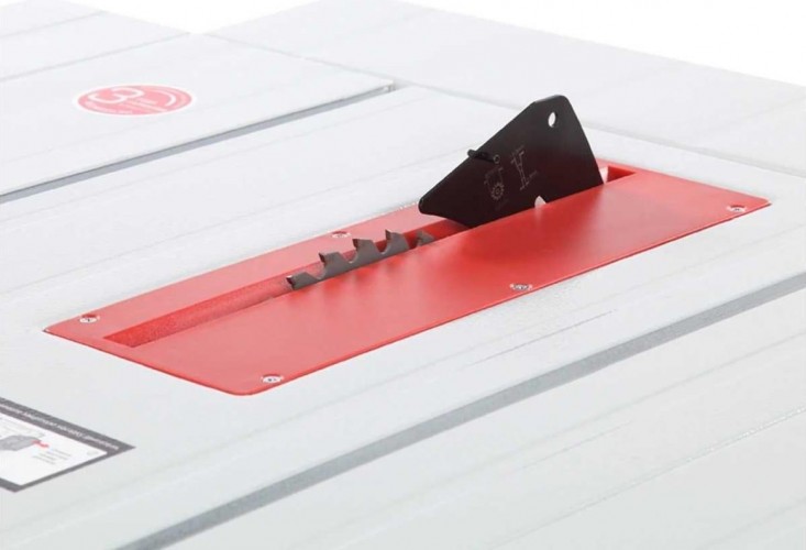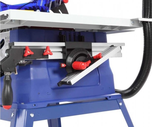 Станок оснащен основным стальным столом, двумя боковыми и одним задним стальными расширениями. Общий размер рабочей поверхности 785×660 мм. Основной стол имеет стандартные Т-образные пазы по обе стороны от режущего инструмента под установку углового упора (-60...+60 град.). Параллельный упор также можно поставить как справа, так и слева от пильного диска. На передней направляющей параллельного упора есть шкалы для точного позиционирования.